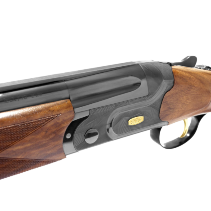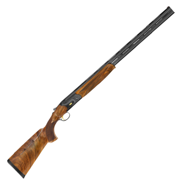 Cañon de 710mm 5 choques intercabiables Gatillo regulable de 7 posiciones Arco guardamonte regulable Culta de Nogal selecionado con carrillera regulable Banda de 10×10 Maletin Plastico