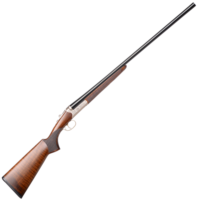 Recámara 76 mm Magnum Cañón de 71cm Báscula de aluminio Monogatillo Selector de tiro Culata de nogal Labrado en oro 24k