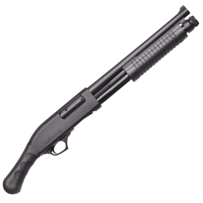 Recámara 76 mm Magnum Cañón de 35,5cm Largo total 68cm Pistol Grip Sistema a repetición Báscula de aluminio Armazon de aluminio Capacidad de 4 +1