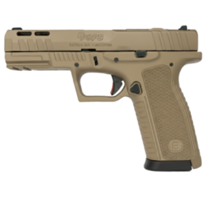 Calibre .9MM Cañón de 108 mm Capacidad de 17 tiros +1 2 cargadores Optic Ready Corredera alivianada Color arena Estuche Plastico Frame de polímero Rail Picatinny