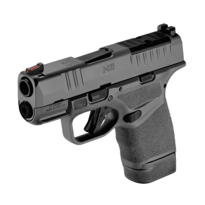 Calibre .9mm Capacidad de 13 tiros +1 Frame de polímero 4 cargadores extendidos Alza y guión de fibra óptica Cañón de 3,13″