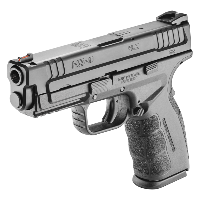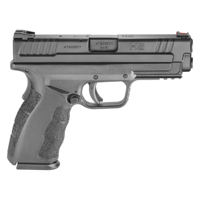 Calibre .9mm Capacidad de 16 tiros +1 Frame de polímero 4 cargadores extendidos Alza y guión de fibra óptica Cañón de 4.07″