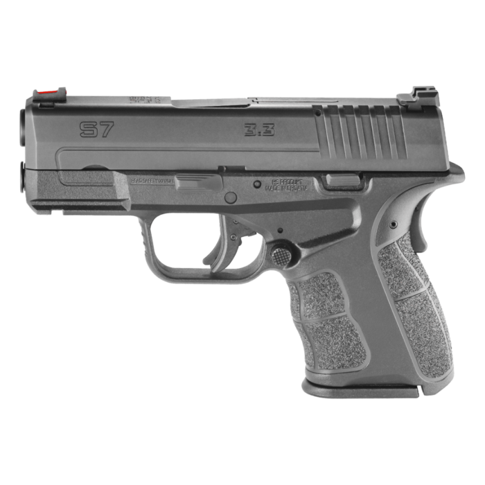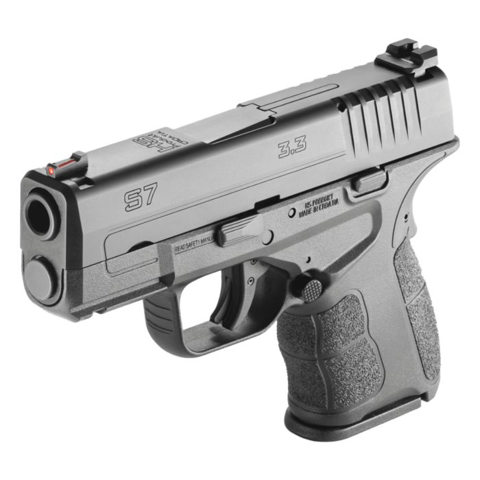 Calibre .9mm Capacidad de 9 tiros +1 Frame de polímero 4 cargadores extendidos Alza y guión de fibra óptica Cañón de 3.33″