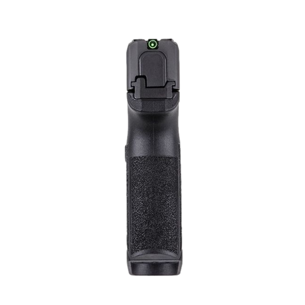 Acción: DAO Largo : 14,8 cms Alto Total: 10,4 Cms Caño: 7,8 Cms Mira: FT Bullseye Peso c/cargador: 500 gr Grip: Polímero Negro Riel M1913 Sist. Disparo: STRIKER – MODULAR Armazón: Polímero Negro Cargadores: 2 de 10 tiros