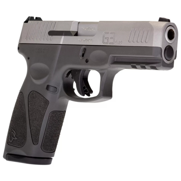 Calibre .9mm Capacidad de 15 Tiros y 17 tiros 2 Cargadores Inox Matte Frame de polímero gris Seguro Seguro de gatillo Riel Picatinny Estuche plástico