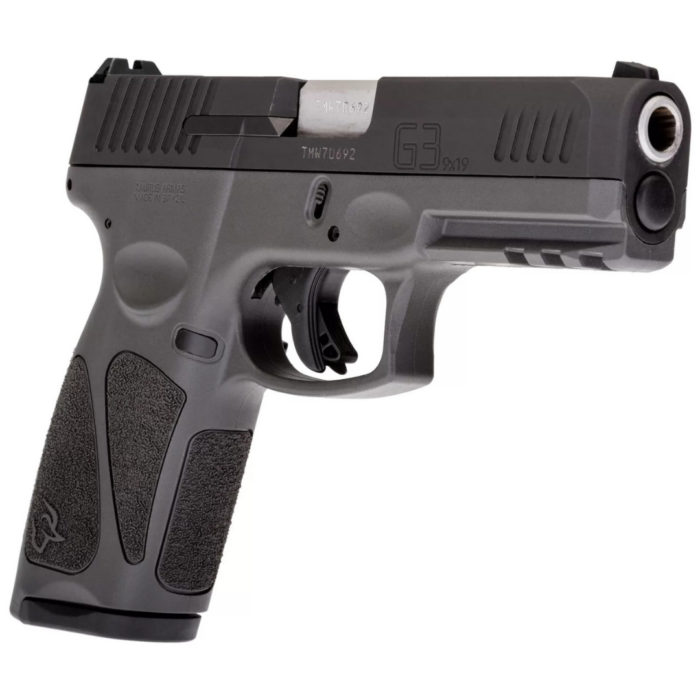 Calibre .9mm Capacidad de 15 Tiros y 17 tiros 2 Cargadores Corredera Pavonada Frame de polímero gris Seguro Seguro de gatillo Riel Picatinny Estuche plástico