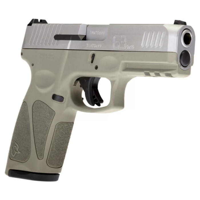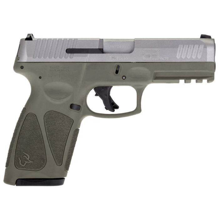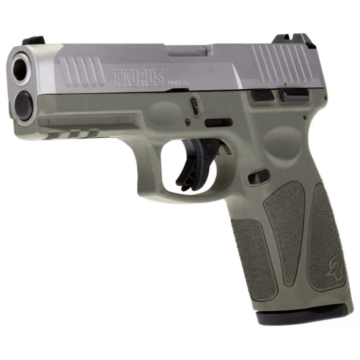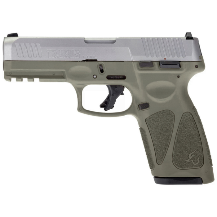 Calibre .9mm Capacidad de 15 Tiros y 17 tiros 2 Cargadores Corredera Inoxidable Matte Frame de polímero Verde Seguro Seguro de gatillo Riel Picatinny Estuche plástico