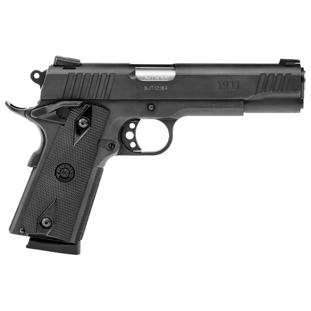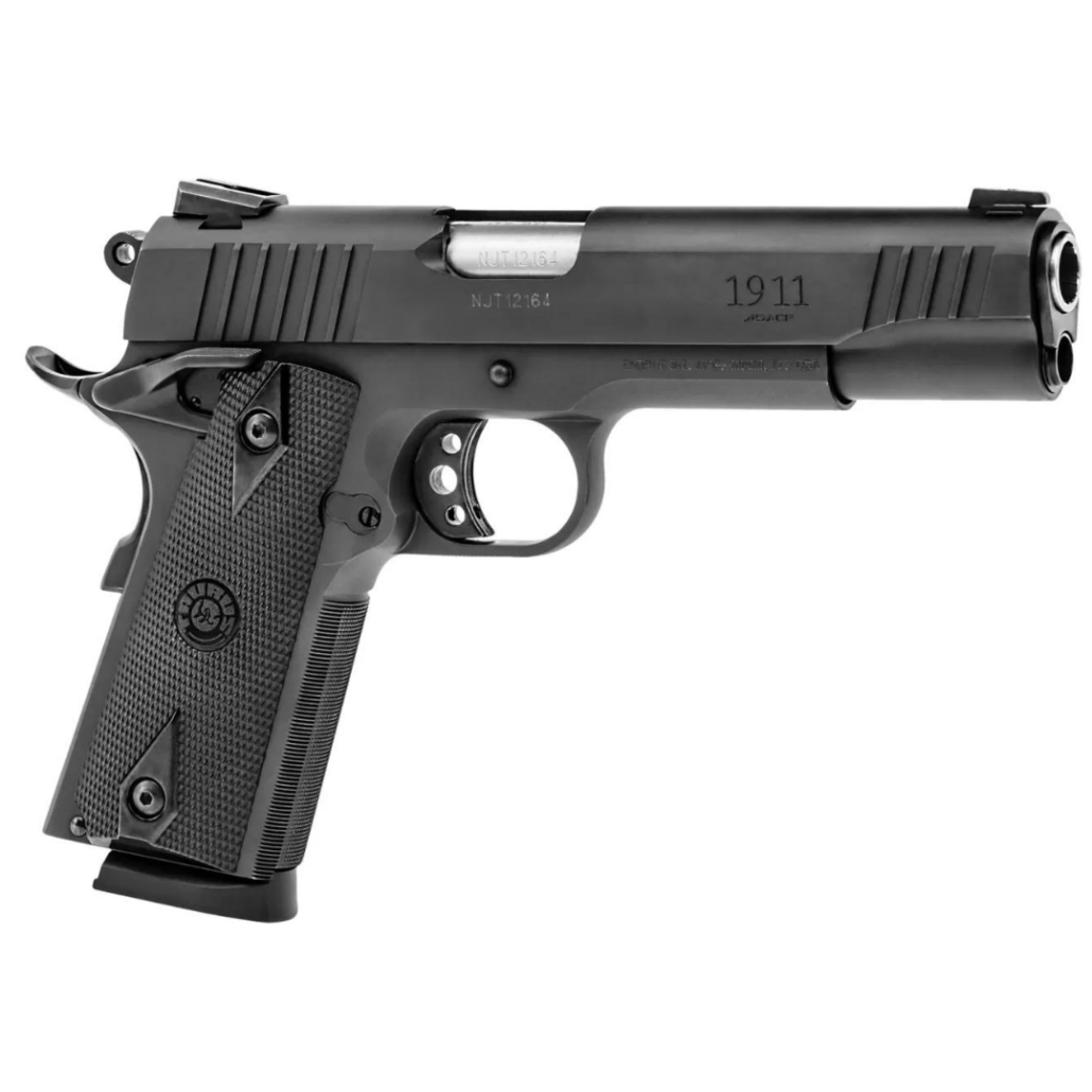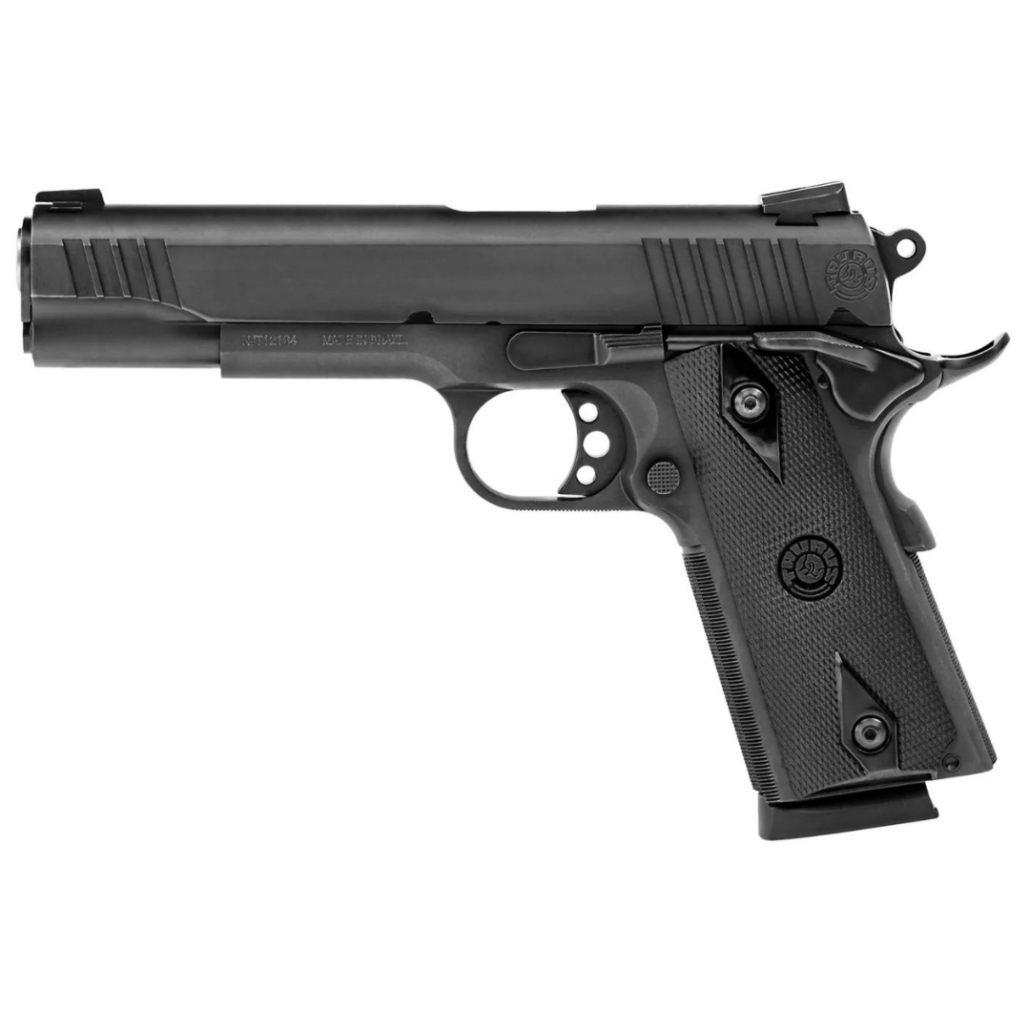 Calibre .45 ACP Capacidad de 8 tiros +1 2 Cargadores Simple Acción Cañón de 5″ Seguro Manual Mira Novak Drift Regulable Terminación en Pavón