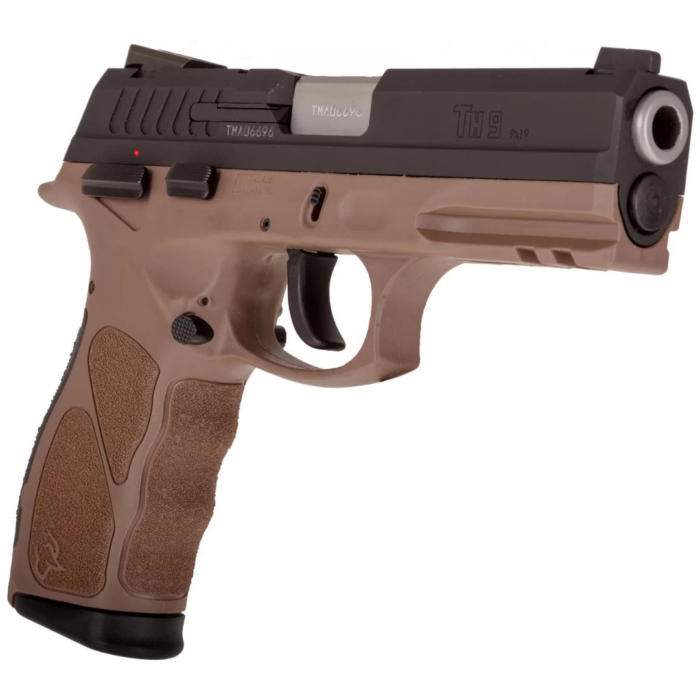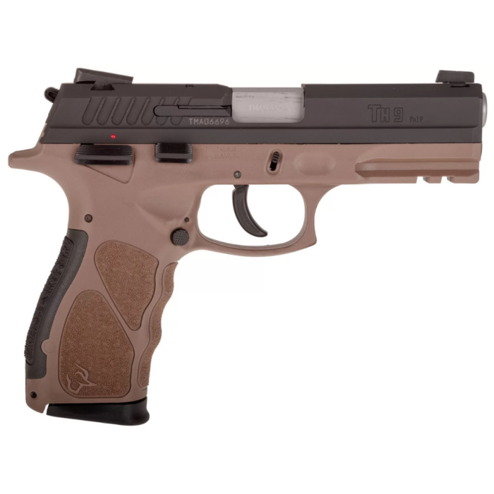 Calibre .9mm Capacidad de 17 tiros +1 2 Cargadores Seguro Riel Picatinny Frame de polímero marrón Terminación en Pavón
